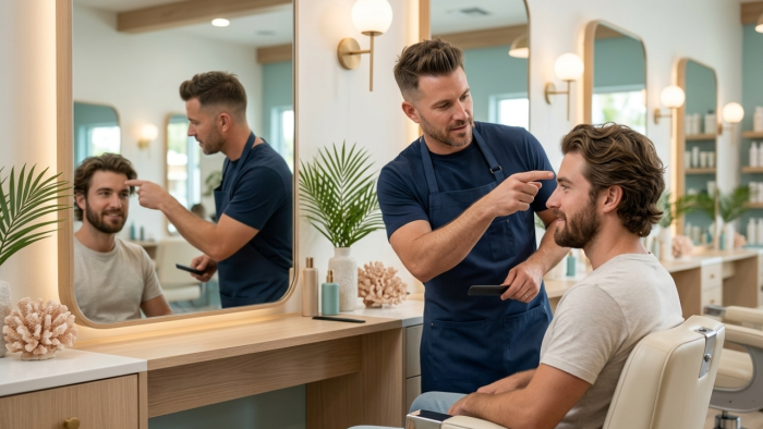 The humidity. Jensen Beach’s subtropical humidity is one of the most consistent and most significant factors in how men’s hair behaves between haircut appointments. Humidity causes hair to swell, expand, and lose definition – which means a style that looks crisp and well-defined in a controlled indoor environment may look softer and more grown-out-looking after time outdoors in Jensen Beach’s humid conditions. Men in Jensen Beach may find that their haircuts look grown out more quickly simply because of how the humidity affects the hair’s behavior – a genuine reason to maintain a more frequent schedule than the general recommendations suggest.