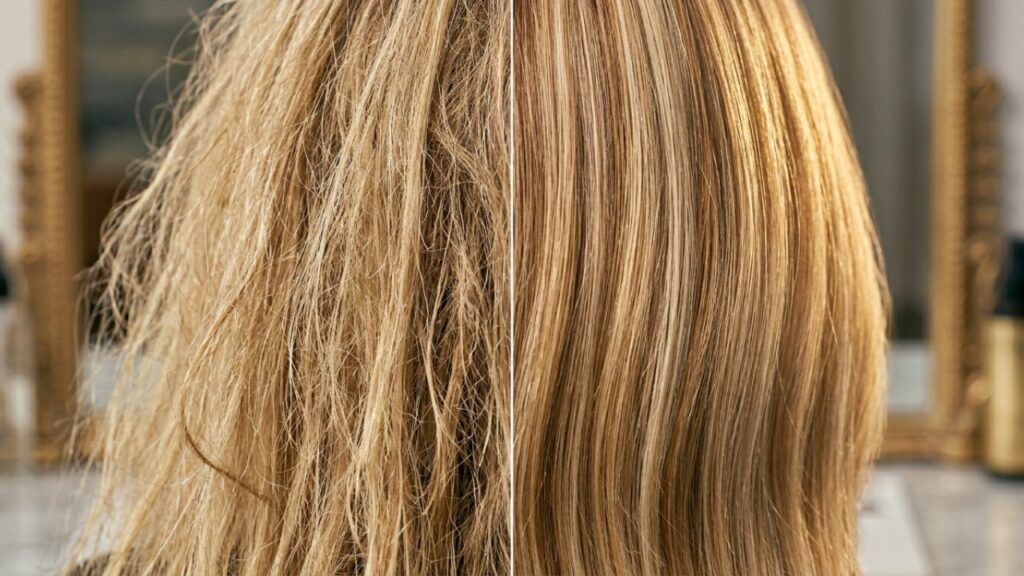 A weekly deep conditioning treatment is the most effective way to continuously replenish the moisture that the lightening process removed and that everyday washing and environmental exposure continues to deplete. The treatment does not need to be complex or expensive – a quality professional conditioning mask, a K18 leave-in molecular repair treatment, or a deeply nourishing Moroccanoil treatment applied weekly and left on for ten to fifteen minutes makes an enormous and immediate difference in the health and appearance of highlighted hair.